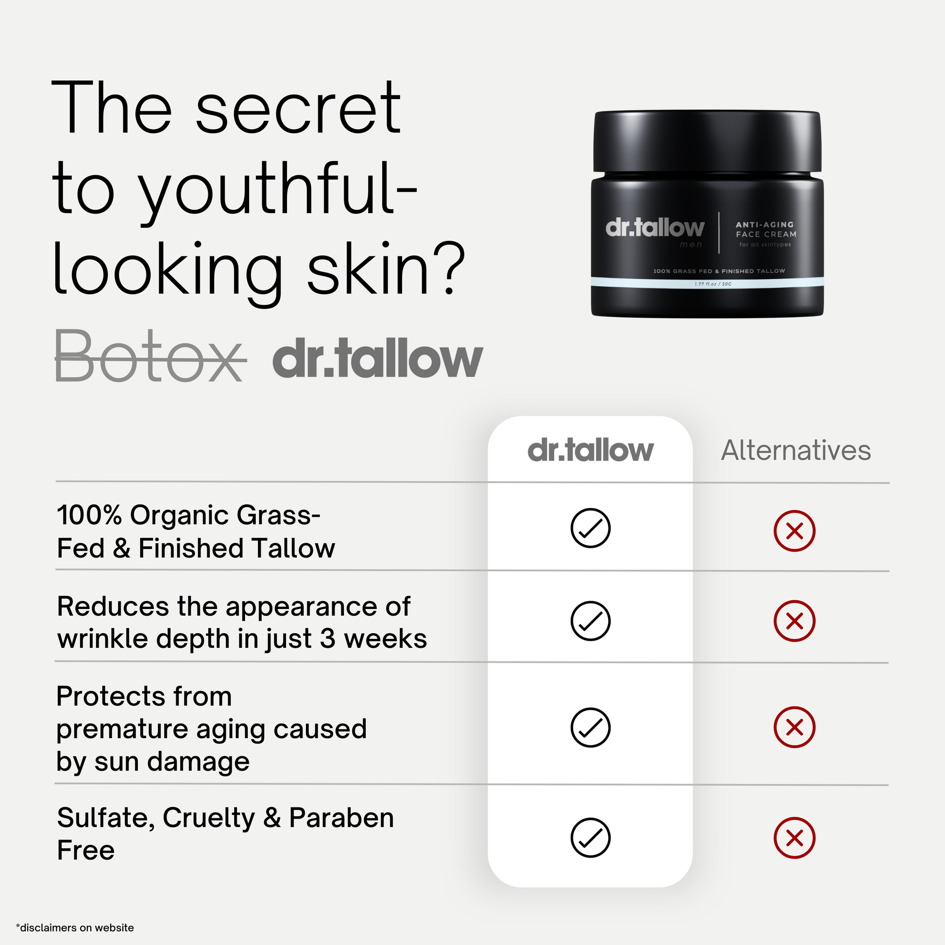 Beef tallow is nature’s ultimate skincare secret, trusted for centuries for its unmatched benefits. Here’s why it’s the foundation of our Anti-Aging Men’s Face Cream: